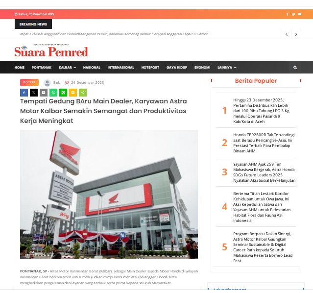 Tempati Gedung BAru Main Dealer, Karyawan Astra Motor Kalbar Semakin Semangat dan Produktivitas Kerja Meningkat by masmul 24 Desember 2025 in Silahkan kunjungi https://www.suarapemredkalbar.com/read/potret/24122025/tempati-gedung-baru-main-dealer-karyawan-astra-motor-kalbar-semakin-semangat-dan-produktivitas-kerja-meningkat. You Might Like Regional Public Launching New ADV160 The SUV Pride Grand Launching New PCX 160 Truly Exceptional! Tetap hati-hati ya bro sist berkendara saat hujan.
