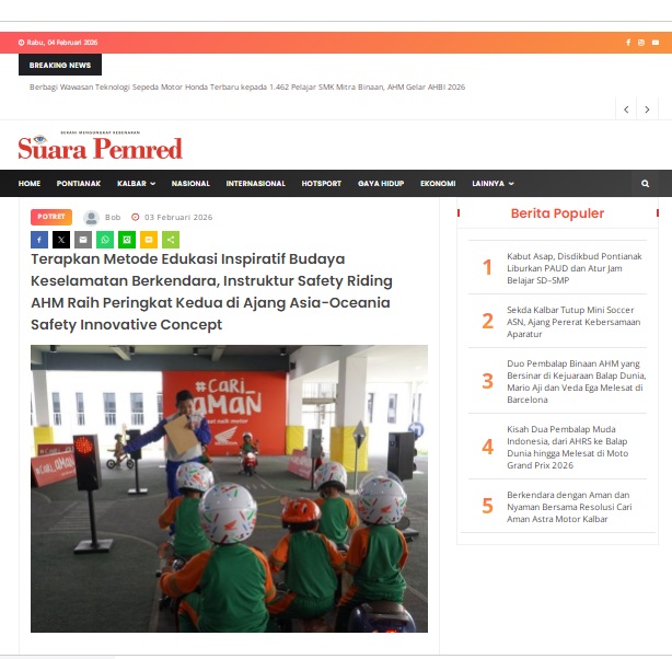 Terapkan Metode Edukasi Inspiratif Budaya Keselamatan Berkendara, Instruktur Safety Riding AHM Raih Peringkat Kedua di Ajang Asia-Oceania Safety Innovative Concept by masmul 3 Februari 2026 in Silahkan kunjungi https://www.suarapemredkalbar.com/read/potret/03022026/terapkan-metode-edukasi-inspiratif-budaya-keselamatan-berkendara-instruktur-safety-riding-ahm-raih-peringkat-kedua-di-ajang-asia-oceania-safety-innovative-concept. You Might Like Regional Public Launching New ADV160 The SUV Pride Grand Launching New PCX 160 Truly Exceptional! Tetap hati-hati ya bro sist berkendara saat hujan.