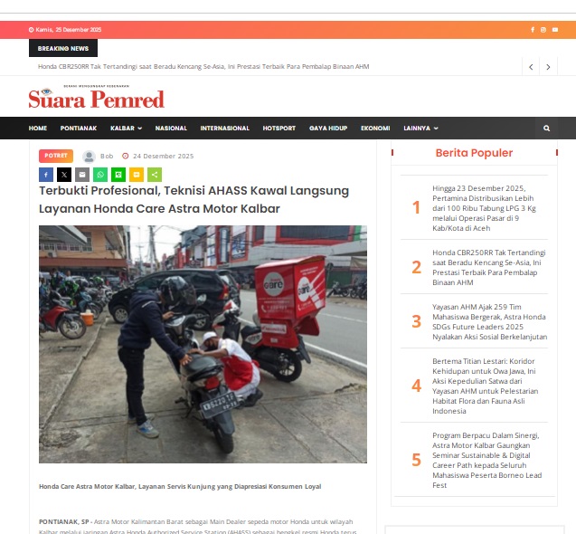 Terbukti Profesional, Teknisi AHASS Kawal Langsung Layanan Honda Care Astra Motor Kalbar by masmul 24 Desember 2025 in Silahkan kunjungi https://www.suarapemredkalbar.com/read/potret/24122025/terbukti-profesional-teknisi-ahass-kawal-langsung-layanan-honda-care-astra-motor-kalbar. You Might Like Regional Public Launching New ADV160 The SUV Pride Grand Launching New PCX 160 Truly Exceptional! Tetap hati-hati ya bro sist berkendara saat hujan.