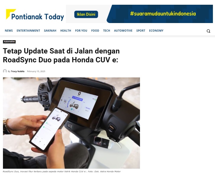 Tetap Update Saat di Jalan dengan RoadSync Duo pada Honda CUV e: by Leo Prima 15 Februari 2025 in Silahkan kunjungi https://pontianaktoday.id/tetap-update-saat-di-jalan-dengan-roadsync-duo-pada-honda-cuv-e/. Tags: Asmo Kalbar Astra Motor kalbar Honda CUV e: Honda Kalbar Motor Honda PT AHM RoadSync Duo Tetap Update You Might Like Regional Public Launching New ADV160 The SUV Pride Grand Launching New PCX 160 Truly Exceptional! Tetap hati-hati ya bro sist berkendara saat hujan.