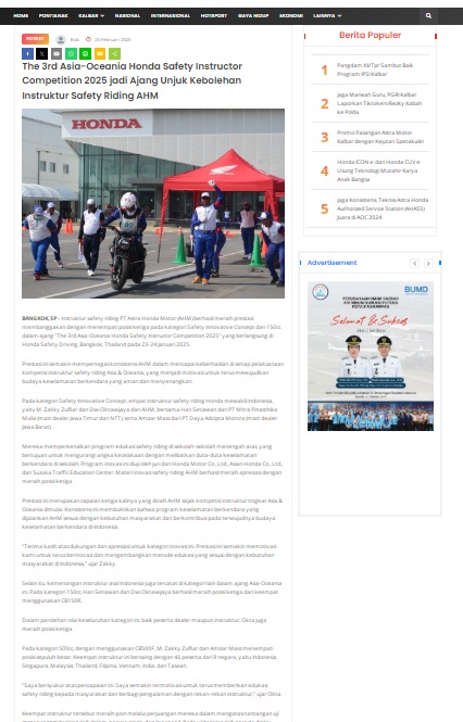 The 3rd Asia-Oceania Honda Safety Instructor Competition 2025 jadi Ajang Unjuk Kebolehan Instruktur Safety Riding AHM by masmul 25 Februari 2025 in Silahkan kunjungi https://www.suarapemredkalbar.com/read/potret/25022025/the-3rd-asia-oceania-honda-safety-instructor-competition-2025-jadi-ajang-unjuk-kebolehan-instruktur-safety-riding-ahm. You Might Like Regional Public Launching New ADV160 The SUV Pride Grand Launching New PCX 160 Truly Exceptional! Tetap hati-hati ya bro sist berkendara saat hujan.