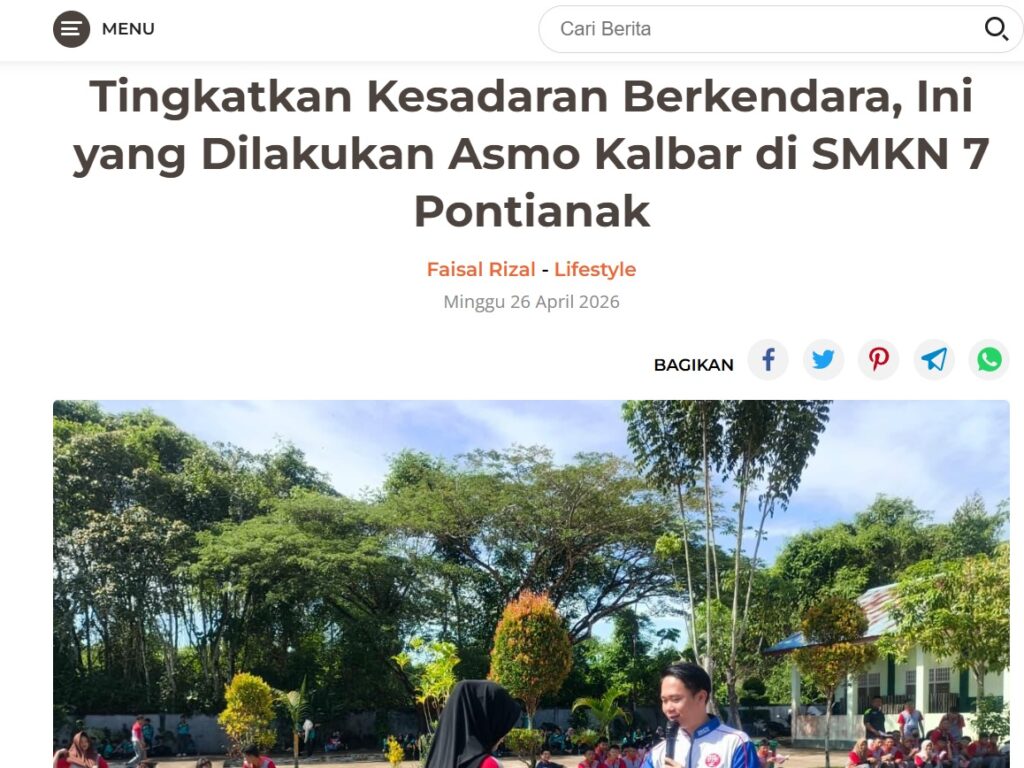 Tingkatkan Kesadaran Berkendara, Ini yang Dilakukan Asmo Kalbar di SMKN 7 Pontianak by Dodi Dodi 26 April 2026 in Silahkan kunjungi https://harianberkat.com/2026/04/26/tingkatkan-kesadaran-berkendara-ini-yang-dilakukan-asmo-kalbar-di-smkn-7-pontianak/. You Might Like Regional Public Launching New ADV160 The SUV Pride Grand Launching New PCX 160 Truly Exceptional! Tetap hati-hati ya bro sist berkendara saat hujan.