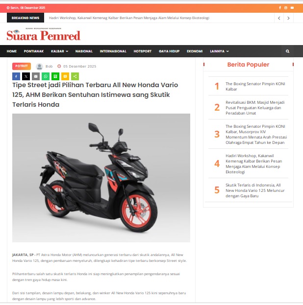 Tipe Street jadi Pilihan Terbaru All New Honda Vario 125, AHM Berikan Sentuhan Istimewa sang Skutik Terlaris Honda by masmul 5 Desember 2025 in Silahkan kunjungi https://www.suarapemredkalbar.com/read/potret/05122025/tipe-street-jadi-pilihan-terbaru-all-new-honda-vario-125-ahm-berikan-sentuhan-istimewa-sang-skutik-terlaris-honda. You Might Like Regional Public Launching New ADV160 The SUV Pride Grand Launching New PCX 160 Truly Exceptional! Tetap hati-hati ya bro sist berkendara saat hujan.
