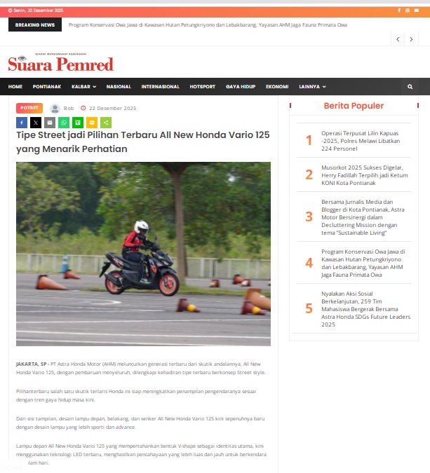 Tipe Street jadi Pilihan Terbaru All New Honda Vario 125 yang Menarik Perhatian by masmul 22 Desember 2025 in Silahkan kunjungi https://www.suarapemredkalbar.com/read/potret/22122025/tipe-street-jadi-pilihan-terbaru-all-new-honda-vario-125-yang-menarik-perhatian. You Might Like Regional Public Launching New ADV160 The SUV Pride Grand Launching New PCX 160 Truly Exceptional! Tetap hati-hati ya bro sist berkendara saat hujan.