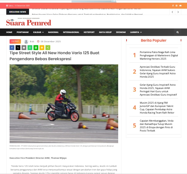 Tipe Street Style All New Honda Vario 125 Buat Pengendara Bebas Berekspresi by masmul 8 Desember 2025 in Silahkan kunjungi https://www.suarapemredkalbar.com/read/potret/08122025/tipe-street-style-all-new-honda-vario-125-buat-pengendara-bebas-berekspresi. You Might Like Regional Public Launching New ADV160 The SUV Pride Grand Launching New PCX 160 Truly Exceptional! Tetap hati-hati ya bro sist berkendara saat hujan.