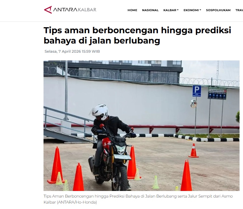 Tips aman berboncengan hingga prediksi bahaya di jalan berlubang by Dedi 7 April 2026 in Silahkan kunjungi https://kalbar.antaranews.com/berita/697357/tips-aman-berboncengan-hingga-prediksi-bahaya-di-jalan-berlubang. You Might Like Regional Public Launching New ADV160 The SUV Pride Grand Launching New PCX 160 Truly Exceptional! Tetap hati-hati ya bro sist berkendara saat hujan.