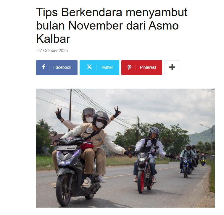 Tips Berkendara menyambut bulan November dari Asmo Kalbar by Nova Sari 27 Oktober 2025 in Silahkan kunjungi https://equator.co.id/tips-berkendara-menyambut-bulan-november-dari-asmo-kalbar/. You Might Like Regional Public Launching New ADV160 The SUV Pride Grand Launching New PCX 160 Truly Exceptional! Tetap hati-hati ya bro sist berkendara saat hujan.