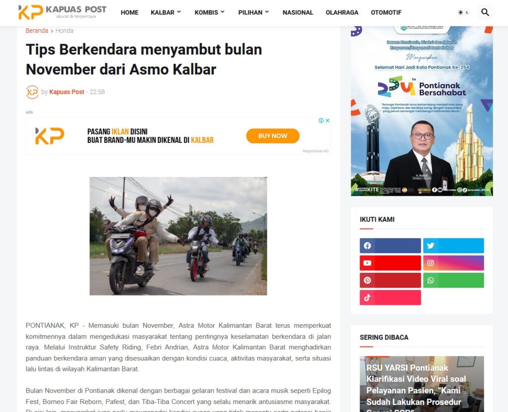 Tips Berkendara menyambut bulan November dari Asmo Kalbar