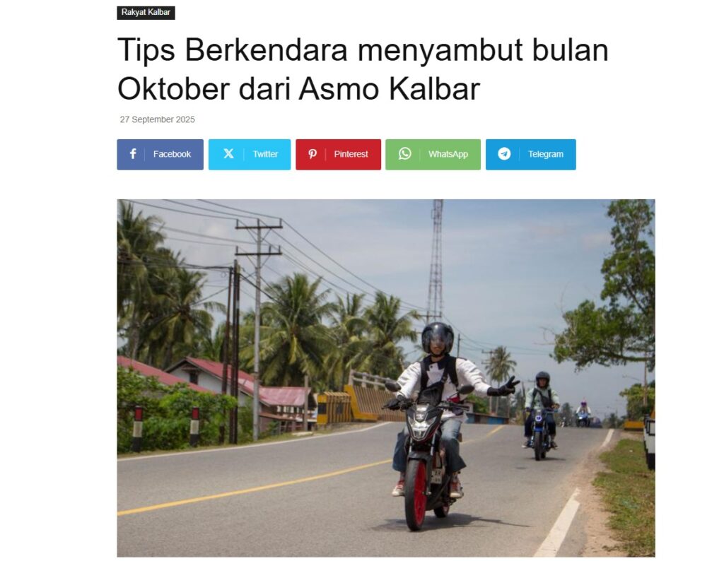 Tips Berkendara menyambut bulan Oktober dari Asmo Kalbar by Nova Sari 27 September 2025 in Silahkan kunjungi https://equator.co.id/tips-berkendara-menyambut-bulan-oktober-dari-asmo-kalbar/. You Might Like Regional Public Launching New ADV160 The SUV Pride Grand Launching New PCX 160 Truly Exceptional! Tetap hati-hati ya bro sist berkendara saat hujan.