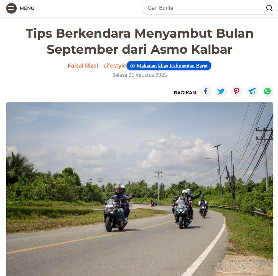 Tips Berkendara Menyambut Bulan September dari Asmo Kalbar by Dodi Dodi 26 Agustus 2025 in Silahkan kunjungi https://harianberkat.com/2025/08/26/tips-berkendara-menyambut-bulan-september-dari-asmo-kalbar/. You Might Like Regional Public Launching New ADV160 The SUV Pride Grand Launching New PCX 160 Truly Exceptional! Tetap hati-hati ya bro sist berkendara saat hujan.