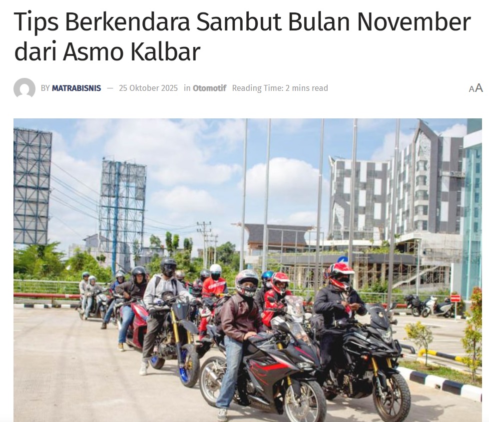 Tips Berkendara Sambut Bulan November dari Asmo Kalbar by Sri Yuliantiningsih 25 Oktober 2025 in Silahkan kunjungi https://matrabisnis.id/2025/10/25/tips-berkendara-sambut-bulan-november-dari-asmo-kalbar/. You Might Like Regional Public Launching New ADV160 The SUV Pride Grand Launching New PCX 160 Truly Exceptional! Tetap hati-hati ya bro sist berkendara saat hujan.