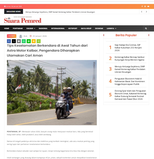 Tips Keselamatan Berkendara di Awal Tahun dari Astra Motor Kalbar, Pengendara Diharapkan Utamakan Cari Aman by masmul 25 Januari 2026 in Silahkan kunjungi https://www.suarapemredkalbar.com/read/potret/25012026/tips-keselamatan-berkendara-di-awal-tahun-dari-astra-motor-kalbar-pengendara-diharapkan-utamakan-cari-aman. You Might Like Regional Public Launching New ADV160 The SUV Pride Grand Launching New PCX 160 Truly Exceptional! Tetap hati-hati ya bro sist berkendara saat hujan.