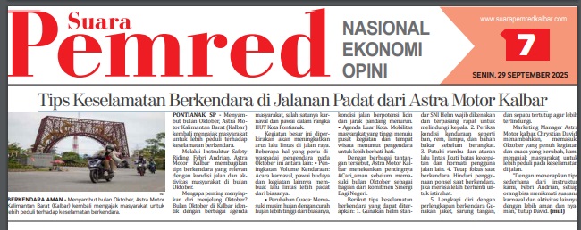 Tips Keselamatan Berkendara di Jalanan Padat dari Astra Motor Kalbar by masmul 29 September 2025 in Silahkan buka . You Might Like Regional Public Launching New ADV160 The SUV Pride Grand Launching New PCX 160 Truly Exceptional! Tetap hati-hati ya bro sist berkendara saat hujan.