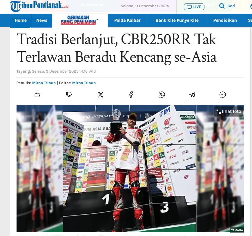 Tradisi Berlanjut, CBR250RR Tak Terlawan Beradu Kencang se-Asia by Nina Soraya 9 Desember 2025 in Silahkan kunjungi https://pontianak.tribunnews.com/otomotif/1153575/tradisi-berlanjut-cbr250rr-tak-terlawan-beradu-kencang-se-asia. You Might Like Regional Public Launching New ADV160 The SUV Pride Grand Launching New PCX 160 Truly Exceptional! Tetap hati-hati ya bro sist berkendara saat hujan.