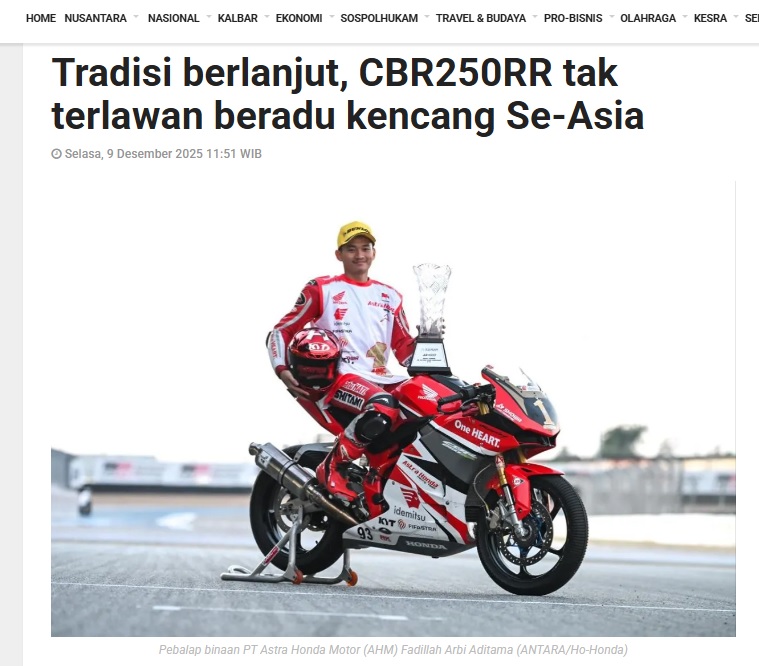 Tradisi berlanjut, CBR250RR tak terlawan beradu kencang Se-Asia by Dedi 9 Desember 2025 in Silahkan kunjungi https://kalbar.antaranews.com/berita/677161/tradisi-berlanjut-cbr250rr-tak-terlawan-beradu-kencang-se-asia. You Might Like Regional Public Launching New ADV160 The SUV Pride Grand Launching New PCX 160 Truly Exceptional! Tetap hati-hati ya bro sist berkendara saat hujan.