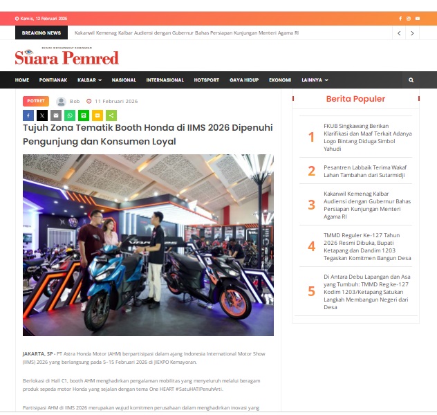 Tujuh Zona Tematik Booth Honda di IIMS 2026 Dipenuhi Pengunjung dan Konsumen Loyal by masmul 11 Februari 2026 in Silahkan kunjungi https://www.suarapemredkalbar.com/read/potret/11022026/tujuh-zona-tematik-booth-honda-di-iims-2026-dipenuhi-pengunjung-dan-konsumen-loyal. You Might Like Regional Public Launching New ADV160 The SUV Pride Grand Launching New PCX 160 Truly Exceptional! Tetap hati-hati ya bro sist berkendara saat hujan.