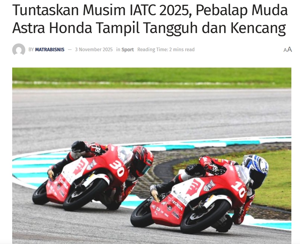 Tuntaskan Musim IATC 2025, Pebalap Muda Astra Honda Tampil Tangguh dan Kencang by Sri Yuliantiningsih 3 November 2025 in Silahkan kunjungi https://matrabisnis.id/2025/11/03/tuntaskan-musim-iatc-2025-pebalap-muda-astra-honda-tampil-tangguh-dan-kencang/. You Might Like Regional Public Launching New ADV160 The SUV Pride Grand Launching New PCX 160 Truly Exceptional! Tetap hati-hati ya bro sist berkendara saat hujan.