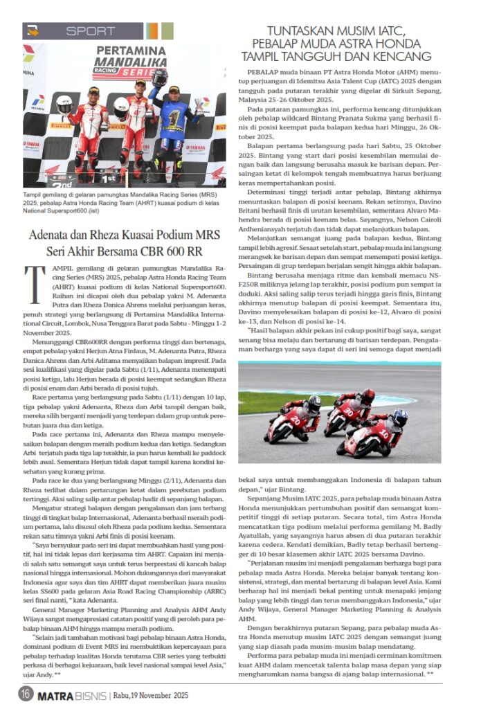 TUNTASKAN MUSIM IATC, PEBALAP MUDA ASTRA HONDA TAMPIL TANGGUH DAN KENCANG by Sri Yuliantiningsih 19 November 2025 in Silahkan buka . You Might Like Regional Public Launching New ADV160 The SUV Pride Grand Launching New PCX 160 Truly Exceptional! Tetap hati-hati ya bro sist berkendara saat hujan.