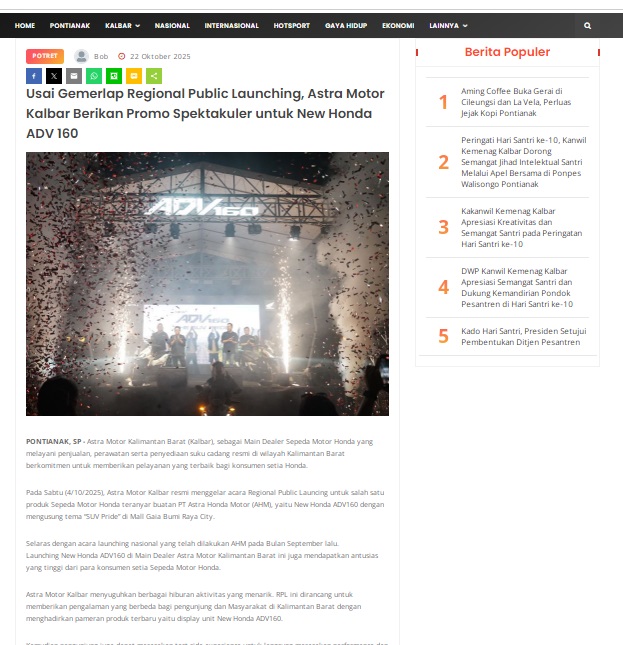 Usai Gemerlap Regional Public Launching, Astra Motor Kalbar Berikan Promo Spektakuler untuk New Honda ADV 160 by masmul 22 Oktober 2025 in Silahkan kunjungi https://www.suarapemredkalbar.com/read/potret/22102025/usai-gemerlap-regional-public-launching-astra-motor-kalbar-berikan-promo-spektakuler-untuk-new-honda-adv-160. You Might Like Regional Public Launching New ADV160 The SUV Pride Grand Launching New PCX 160 Truly Exceptional! Tetap hati-hati ya bro sist berkendara saat hujan.