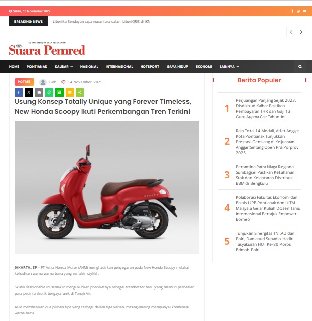 Usung Konsep Totally Unique yang Forever Timeless, New Honda Scoopy Ikuti Perkembangan Tren Terkini by masmul 14 November 2025 in Silahkan kunjungi https://www.suarapemredkalbar.com/read/potret/14112025/usung-konsep-totally-unique-yang-forever-timeless-new-honda-scoopy-ikuti-perkembangan-tren-terkini. You Might Like Regional Public Launching New ADV160 The SUV Pride Grand Launching New PCX 160 Truly Exceptional! Tetap hati-hati ya bro sist berkendara saat hujan.