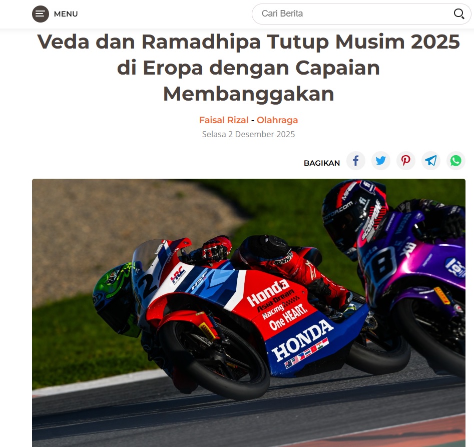 Veda dan Ramadhipa Tutup Musim 2025 di Eropa dengan Capaian Membanggakan by Dodi Dodi 2 Desember 2025 in Silahkan kunjungi https://harianberkat.com/2025/12/02/veda-dan-ramadhipa-tutup-musim-2025-di-eropa-dengan-capaian-membanggakan/. You Might Like Regional Public Launching New ADV160 The SUV Pride Grand Launching New PCX 160 Truly Exceptional! Tetap hati-hati ya bro sist berkendara saat hujan.
