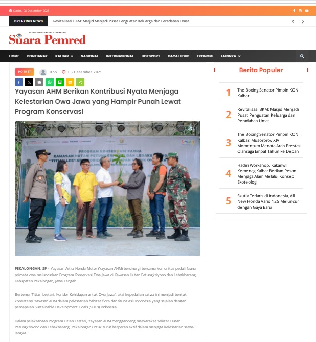 Yayasan AHM Berikan Kontribusi Nyata Menjaga Kelestarian Owa Jawa yang Hampir Punah Lewat Program Konservasi by masmul 5 Desember 2025 in Silahkan kunjungi https://www.suarapemredkalbar.com/read/potret/05122025/yayasan-ahm-berikan-kontribusi-nyata-menjaga-kelestarian-owa-jawa-yang-hampir-punah-lewat-program-konservasi. You Might Like Regional Public Launching New ADV160 The SUV Pride Grand Launching New PCX 160 Truly Exceptional! Tetap hati-hati ya bro sist berkendara saat hujan.