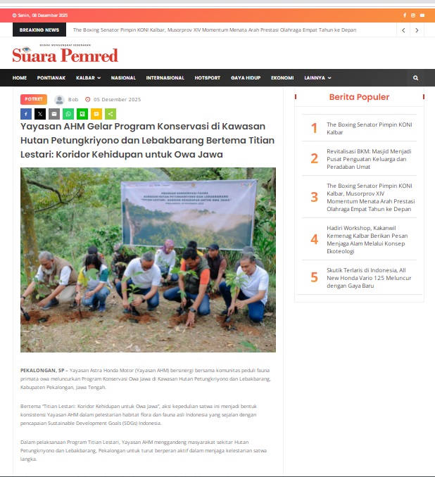 Yayasan AHM Gelar Program Konservasi di Kawasan Hutan Petungkriyono dan Lebakbarang Bertema Titian Lestari: Koridor Kehidupan untuk Owa Jawa by masmul 5 Desember 2025 in Silahkan kunjungi https://www.suarapemredkalbar.com/read/potret/05122025/yayasan-ahm-gelar-program-konservasi-di-kawasan-hutan-petungkriyono-dan-lebakbarang-bertema-titian-lestari-koridor-kehidupan-untuk-owa-jawa. You Might Like Regional Public Launching New ADV160 The SUV Pride Grand Launching New PCX 160 Truly Exceptional! Tetap hati-hati ya bro sist berkendara saat hujan.