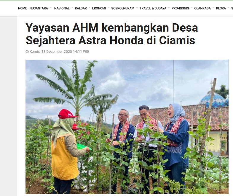 Yayasan AHM kembangkan Desa Sejahtera Astra Honda di Ciamis by Dedi 18 Desember 2025 in Silahkan kunjungi https://kalbar.antaranews.com/berita/678805/yayasan-ahm-kembangkan-desa-sejahtera-astra-honda-di-ciamis. You Might Like Regional Public Launching New ADV160 The SUV Pride Grand Launching New PCX 160 Truly Exceptional! Tetap hati-hati ya bro sist berkendara saat hujan.