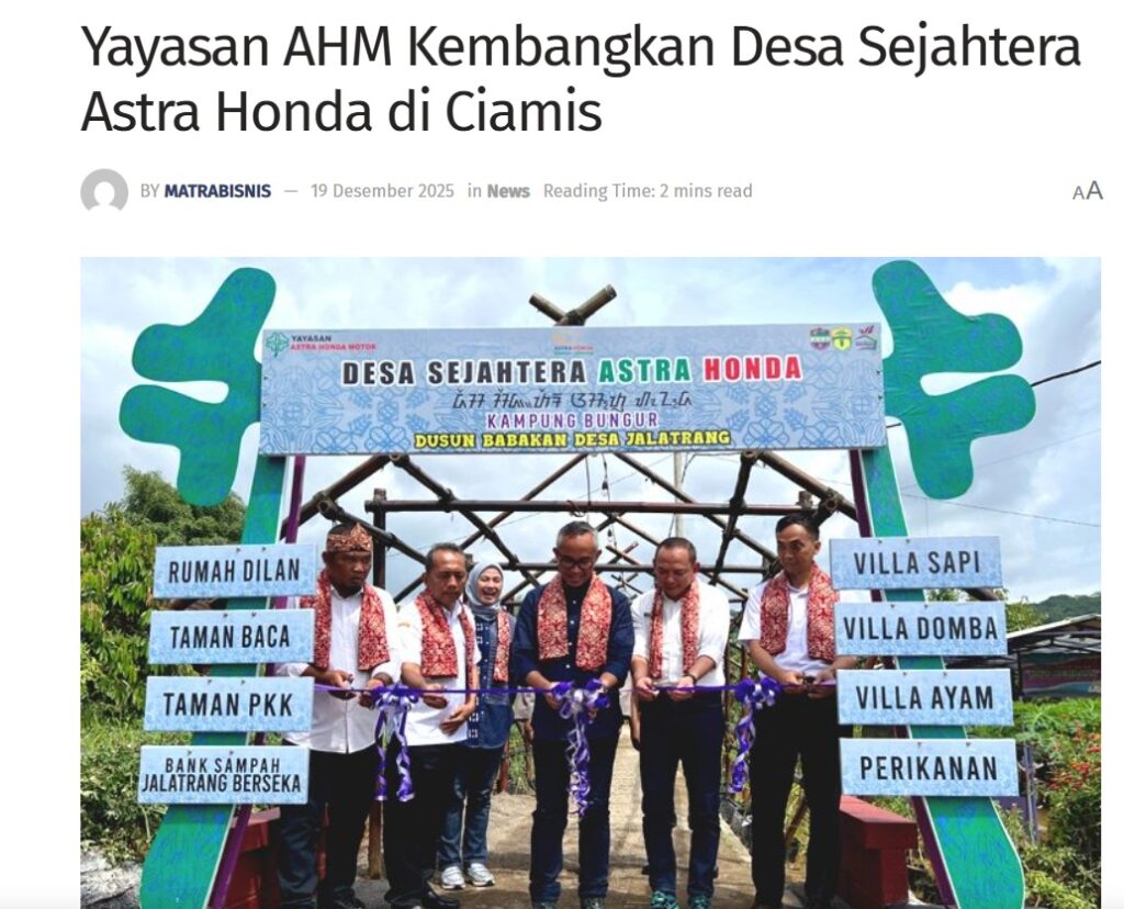 Yayasan AHM Kembangkan Desa Sejahtera Astra Honda di Ciamis by Sri Yuliantiningsih 19 Desember 2025 in Silahkan kunjungi https://matrabisnis.id/2025/12/19/yayasan-ahm-kembangkan-desa-sejahtera-astra-honda-di-ciamis/. You Might Like Regional Public Launching New ADV160 The SUV Pride Grand Launching New PCX 160 Truly Exceptional! Tetap hati-hati ya bro sist berkendara saat hujan.