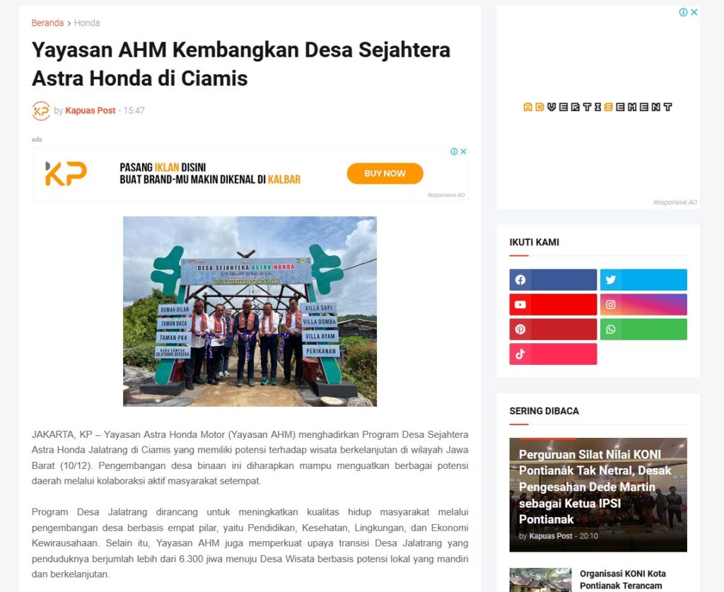 Yayasan AHM Kembangkan Desa Sejahtera Astra Honda di Ciamis by Muhammad Arif 18 Desember 2025 in Silahkan kunjungi https://www.kapuaspost.web.id/2025/12/yayasan-ahm-kembangkan-desa-sejahtera.html. Tags: astra Astra Motor kalbar Astra Motor Pontianak astramotor honda kalbar pontianak sepeda motor You Might Like Regional Public Launching New ADV160 The SUV Pride Grand Launching New PCX 160 Truly Exceptional! Tetap hati-hati ya bro sist berkendara saat hujan.