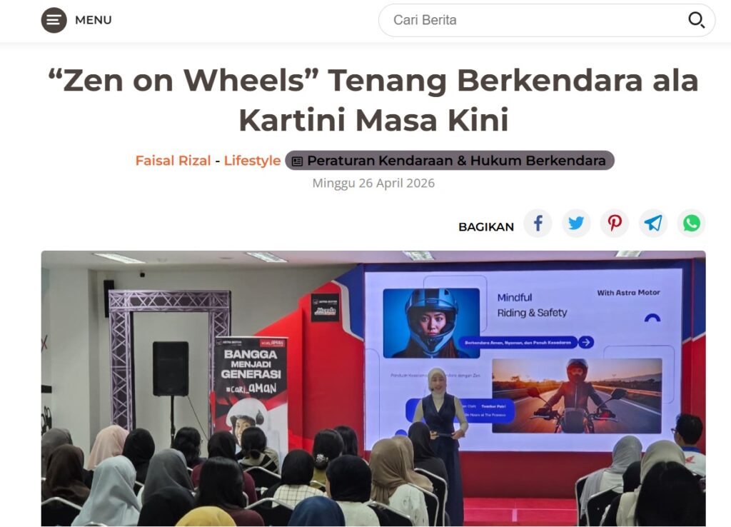 “Zen on Wheels” Tenang Berkendara ala Kartini Masa Kini by Dodi Dodi 26 April 2026 in Silahkan kunjungi https://harianberkat.com/2026/04/26/zen-on-wheels-tenang-berkendara-ala-kartini-masa-kini/. You Might Like Regional Public Launching New ADV160 The SUV Pride Grand Launching New PCX 160 Truly Exceptional! Tetap hati-hati ya bro sist berkendara saat hujan.