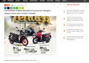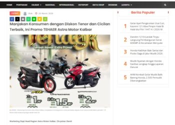 Manjakan Konsumen dengan Diskon Tenor dan Cicilan Terbaik, Ini Promo TEHAER Astra Motor Kalbar 26 Maret 2026 by masmul Read More