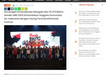 Semangat Persaudaraan Mengalir dari 32.373 Bikers Honda: HBD 2025 Dimeriahkan Anggota Komunitas Se-Indonesia dengan Usung Tema Brotherhood Festival 16 November 2025 by masmul Read More
