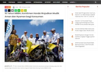 18 Tahun MBBH, Komitmen Honda Wujudkan Mudik Aman dan Nyaman bagi Konsumen 23 Maret 2026 by masmul Read More