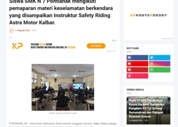 Suasana edukasi keselamatan berkendara saat Instruktur Safety Riding Astra Motor Kalbar memberikan pembekalan kepada siswa SMK N 7 Pontianak. 25 Januari 2026 by Muhammad Arif Read More