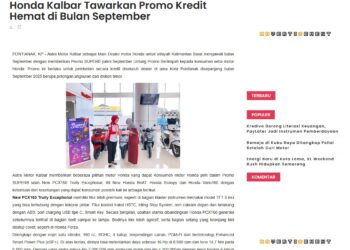 Honda Kalbar Tawarkan Promo Kredit Hemat di Bulan September 18 September 2025 by Muhammad Arif Read More