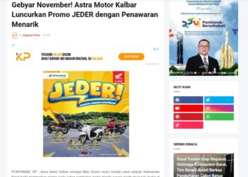 Astra Motor Kalbar Tawarkan Beragam Pilihan Motor dengan Angsuran Hemat melalui Promo JEDER di Mempawah 15 November 2025 by Muhammad Arif Read More