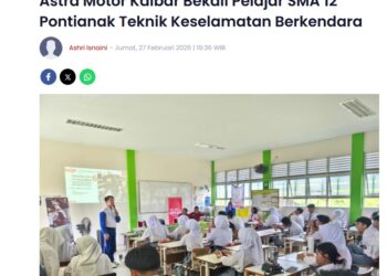 Astra Motor Kalbar Bekali Pelajar SMA 12 Pontianak Teknik Keselamatan Berkendara 27 Februari 2026 by Aristono Edi Kiswantoro Read More