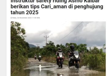 Instruktur safety riding Asmo Kalbar berikan tips Cari_aman di penghujung tahun 2025 26 November 2025 by Dedi Read More