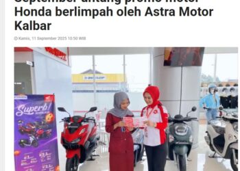 September untung promo motor Honda berlimpah oleh Astra Motor Kalbar 11 September 2025 by Dedi Read More