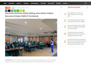 Seminar Safety Riding Astra Motor Kalbar, Pelajar SMKN 5 Pontianak Antusias jadi Duta Cari Aman 29 Januari 2026 by masmul Read More