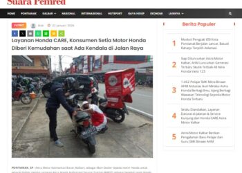 Honda Care, :Layanan Kendala Kendaraan dan Servis Kunjung dari Astra Motor Kalbar yang Diapresiasi Konsumen Loyal 22 Januari 2026 by masmul Read More