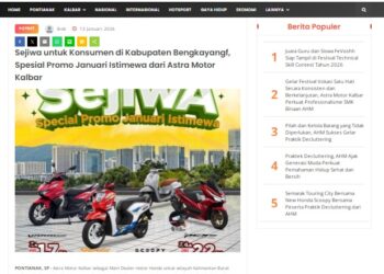Astra Motor Kalbar Berikan Sejiwa, Spesial Promo Januari Istimewa untuk Semua Produk Terbaik AHM 13 Januari 2026 by masmul Read More