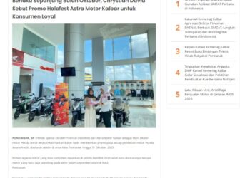 Berlaku Sepanjang Bulan Oktober, Chrystian David Sebut Promo Halofest Astra Motor Kalbar untuk Konsumen Loyal 20 Oktober 2025 by masmul Read More