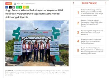 Jaga Potensi Wisata Berkelanjutan, Yayasan AHM Hadirkan Program Desa Sejahtera Astra Honda Jalatrang di Ciamis 22 Desember 2025 by masmul Read More