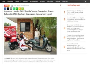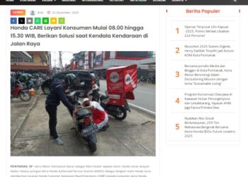 Honda CARE Astra Motor Kalbar Layani Berbagai Bentuk Servis Kendaraan Konsumen Loyal 22 Desember 2025 by masmul Read More