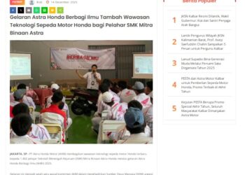 Ajak Pelajar SMPN 13 Pontianak untuk Cari Aman, Astra Motor Kalbar Perkuat Program Sinergi Bagi Negeri 14 Desember 2025 by masmul Read More