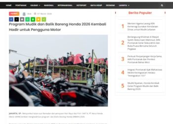 Program Mudik dan Balik Bareng Honda 2026 Kembali Hadir untuk Pengguna Motor 7 Maret 2026 by masmul Read More