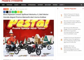 Bisa Dipesan Lewat Aplikasi Motorku X, Beli Motor Honda dapat Promo Menarik dari Asmo Kalbar 21 Desember 2025 by masmul Read More