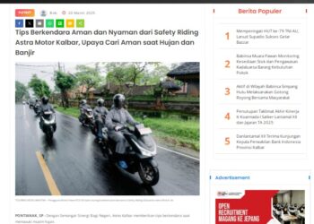 Tips Berkendara Aman dan Nyaman dari Safety Riding Astra Motor Kalbar, Upaya Cari Aman saat Hujan dan Banjir 20 Maret 2025 by masmul Read More